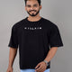 Cotton Blend Oversize Loose Fit Drop Shoulder Round Neck Half Sleeve Typography Black T-Shirt for Men (SIZE- M,L,XL,XXL)