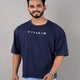 Cotton Blend Oversize Loose Fit Drop Shoulder Round Neck Half Sleeve Typography Blue T-Shirt for Men (SIZE- M,L,XL,XXL)