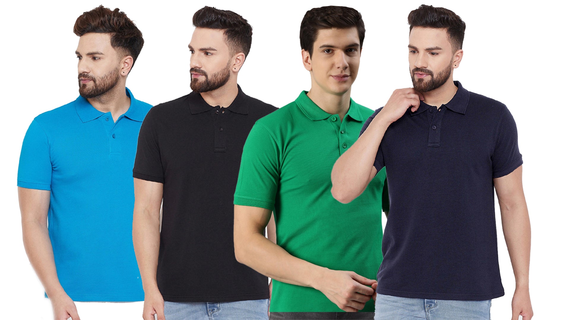 Product Name: Cotton Blend Solid Half Sleeves Mens Polo Neck T-Shirt (Pack of 4) Package Contains: It Has 4 Pieces Of Mens Polo T-Shirt Fabric: Cotton Blend Color: Assorted Pattern: Solid Fit: Regular Sleeves Type: Half Sleeves Neck Type: Polo Neck Occasion: Casual Combo: Pack of 4 Ideal For: Men Weight: 200